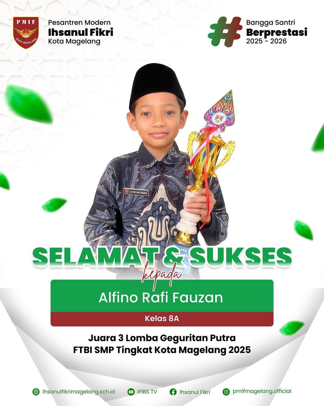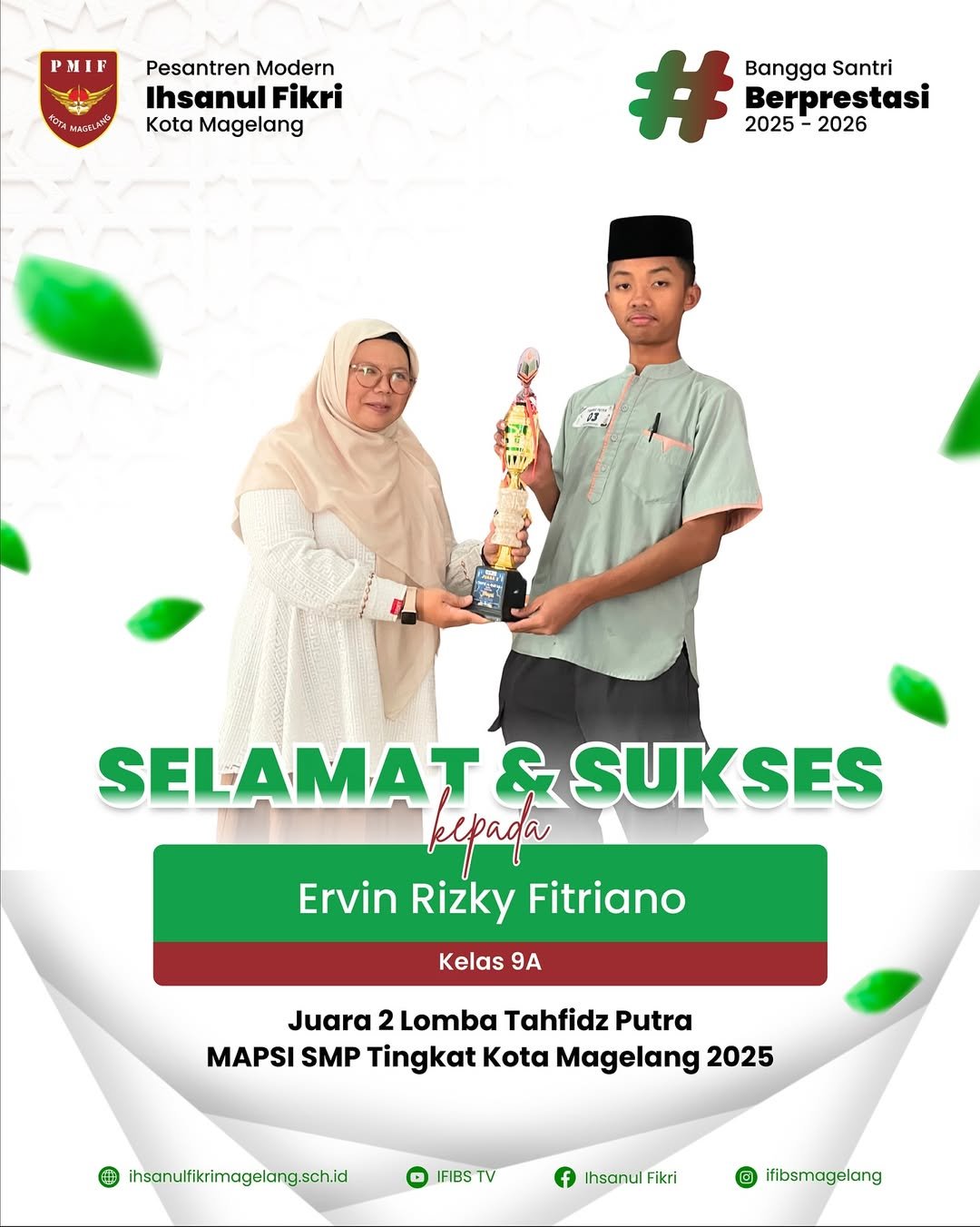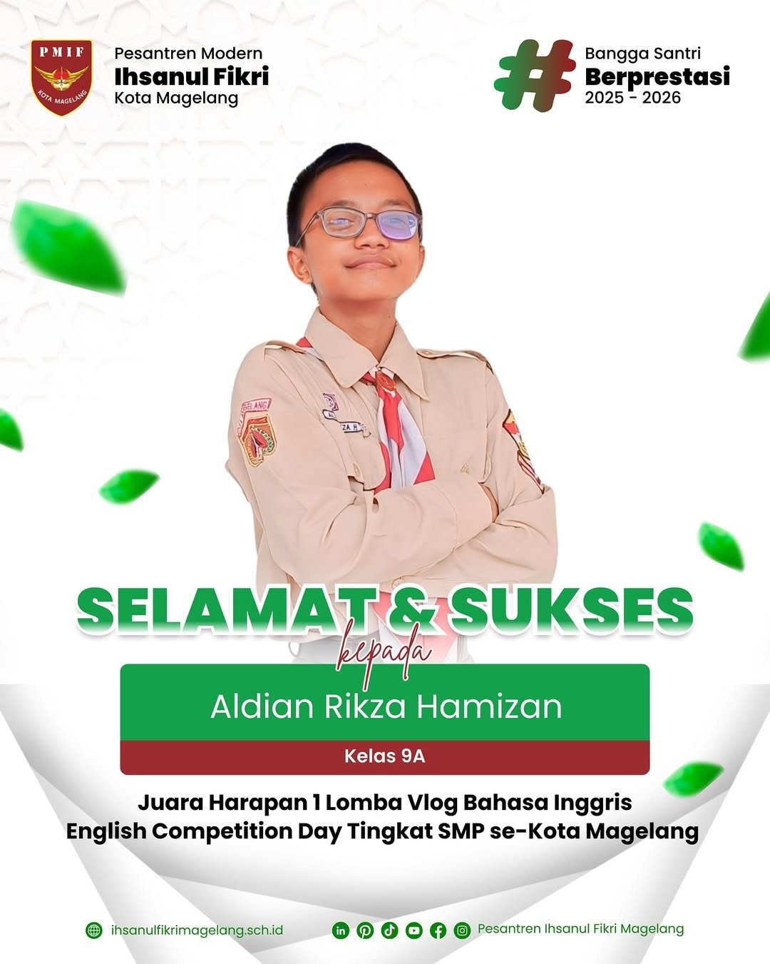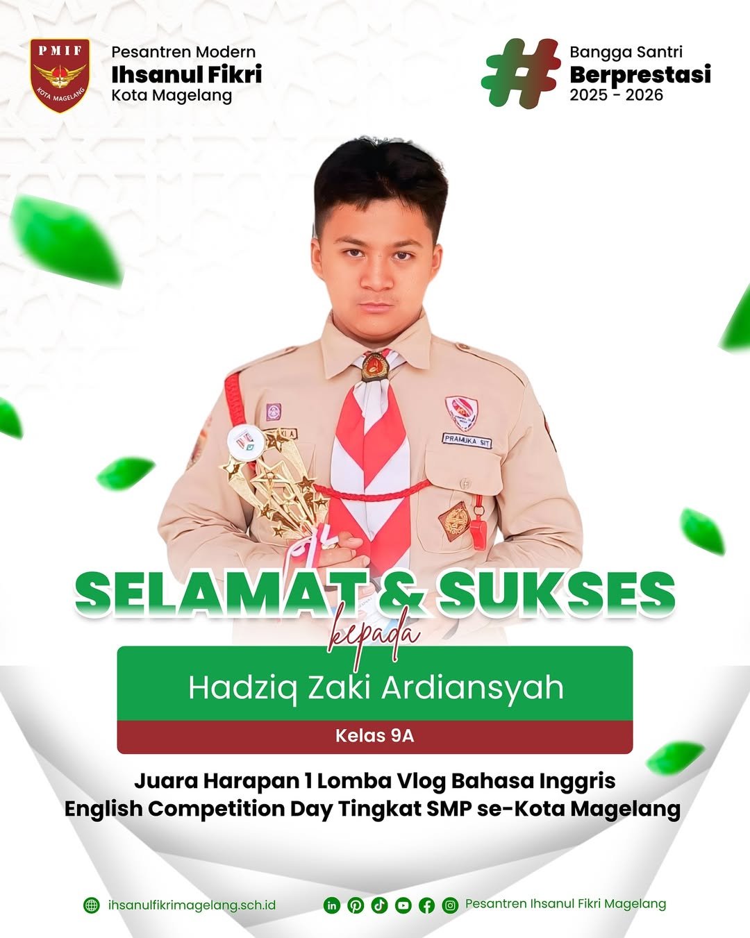 "Di Pesantren Ihsanul Fikri, saya merasa bersyukur mendapatkan pendidikan yang luar biasa. Para ustadz dan ustadzahnya sangat suportif, membuat saya betah menuntut ilmu. Lingkungannya pun sangat kekeluargaan."